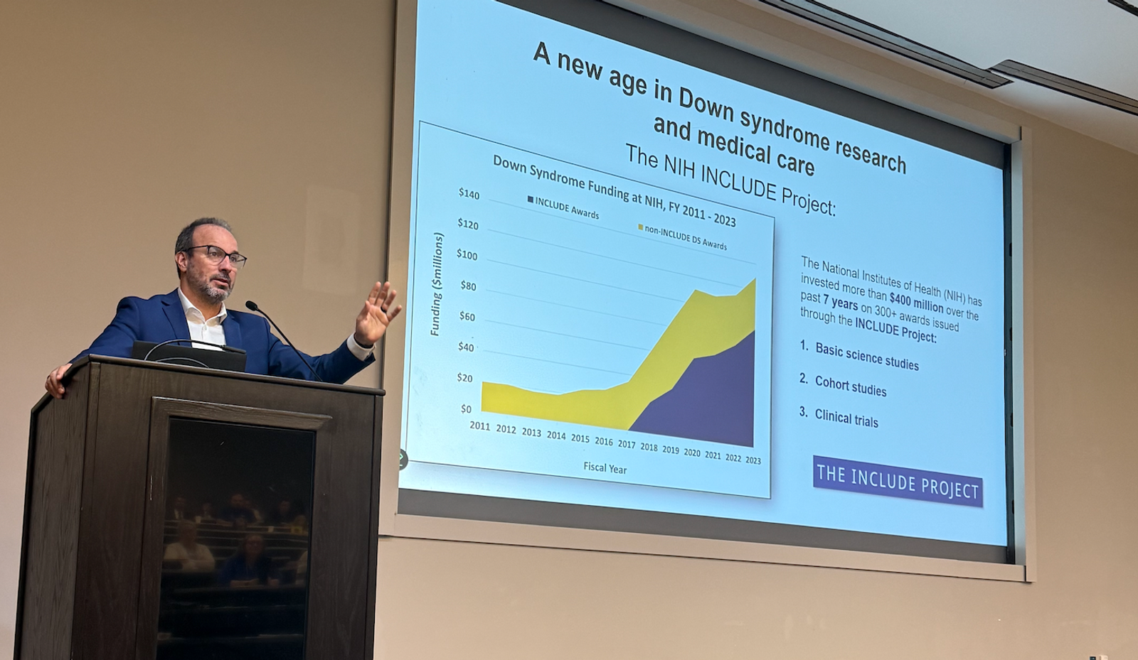 INCLUDE Investigator and Executive Director of the Linda Crnic Institute for Down Syndrome, Dr. Joaquin Espinosa, gave a presentation titled: Recent Research Advances and New Clinical Trials Benefiting Individuals with DS.